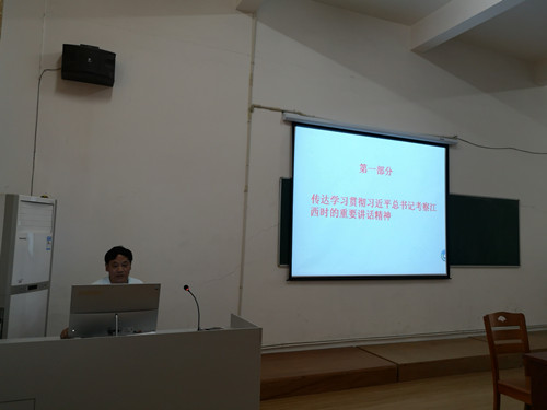 为进一步巩固全体党员的党性修养,不忘初心,牢记使命,永远铭记作为党员的责任义务,5月29日下午,6776永利集团教职工党员、学生党支部全体党员及发展对象在望杉楼104教室参加了党课学习。党课由梁光霞书记主讲,内容为认真学习贯彻习近平总书记视察江西时的重要讲话精神和刘奇书记在全省领导干部会议上的讲话精神。