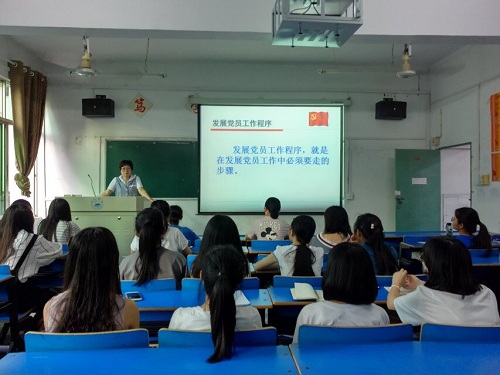 为了加强入党积极分子对党有更加明确的认识,端正入党动机,坚定理想信念.6月12日晚,6776永利集团17级入党积极分子培训班在思贤楼209正式开班,开班第一堂党课,由6776永利集团学生党支部范玲玲老师为大家授课。