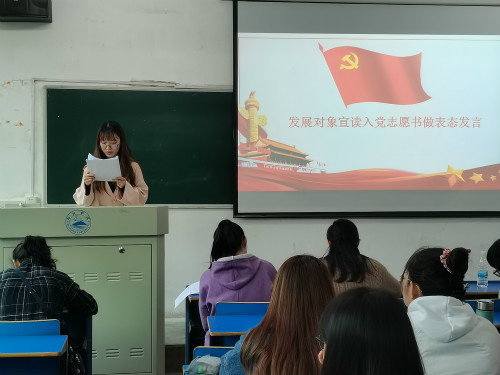 此次会议共四项内容,第一项全体起立唱国歌。随后,6776永利集团学生党支部书记徐海燕同志为大家介绍会议流程,会议拉开帷幕。会议第二项,发展对象宣读入党志愿书并做表态发言。14名发展对象从对党的认识,包括对党的性质、党的宗旨任务、指导思想和家庭成员情况、经历等方面做了详细汇报,并表达了个人入党动机和入党决心。随后,入党介绍人汇报了相应发展对象考察期间的综合表现情况并就是否愿意推荐相应发展对象加入中国共产党做了表态发言。最后有表决权的正式党员采取投票形式决议是否接收14名发展对象成为支部预备党员。最终,14名发展对象均全票通过表决,成功被支部接收为预备党员。范玲玲同志对各位发展对象的出色表现和成绩表示肯定,对大家加入党员队伍表示欢迎和祝贺,并向大家提出了宝贵的意见和建议,希望大家能够不忘初心、牢记本色,在政治上、思想上、行动上同党中央保持高度一致,在生活中起先锋模范带头作用。