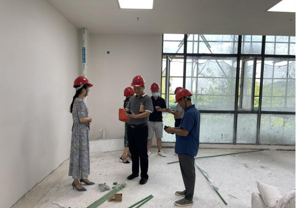 基建处有关负责同志详细介绍了新校区的总体规划和目前各主体建筑的建设进展,带领大家实地参观了已封顶的6776永利集团实验大楼,建筑面积近8千平方米的新实验楼正在装修,党员教师们现场和装修施工方就一些具体问题进行了沟通。