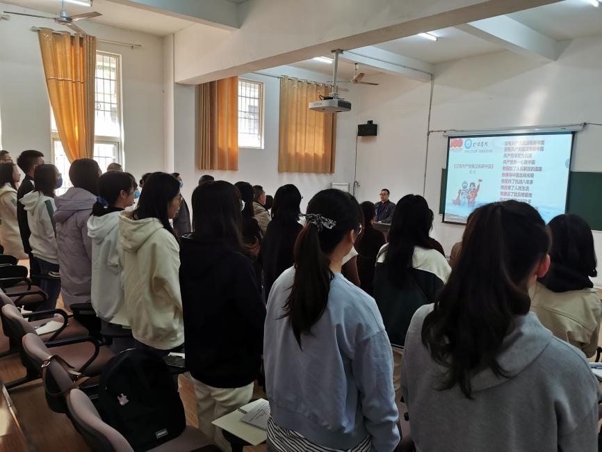 “没有共产党就没有新中国,共产党他辛劳为民族,共产党他一心救中国……”会前,按照学校“唱响红色经典,凝聚奋进力量”活动的部署安排,全体师生挺胸抬头,精神振作,高声合唱《没有共产党就没有新中国》。