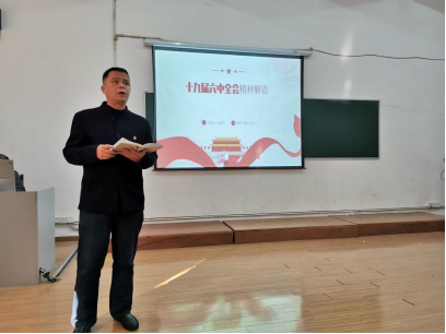 12月15日下午,6776永利集团特邀学校党的十九届六中全会精神宣讲团成员段善君博士来院宣讲党的十九届六中全会精神。6776永利集团党委副书记龚英军同志主持宣讲会,6776永利集团全体教职工及学生党支部党员、入党积极分子到场聆听。
