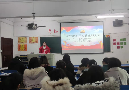 学生党支部书记徐海燕主持此次会议,组织委员董婧、学生科科长胥杜鹃、学生科同志赵文婷、教师党员王庆军出席本次会议。徐海燕同志首先介绍了本次大会的会议流程、目的和意义,并向大家介绍了本次转正及转预备党员的同志名单。