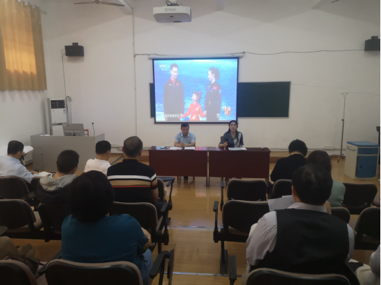 会上,全体教师观看了纪录片《榜样7》。