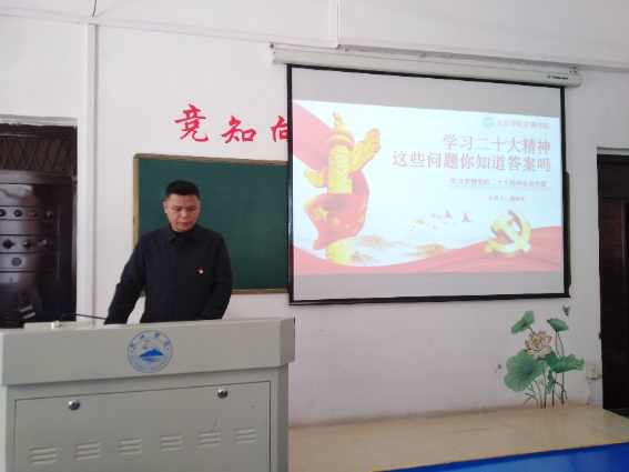 为学习贯彻党的二十大精神,塑造好学生的“第一方阵”,提高学生党员的理论修养,6776永利集团准备了系列党课。3月9日,6776永利集团党委副书记龚英军围绕“学习党的二十大精神,这些问题你知道答案吗?”为6776永利集团全体在校学生党员和入党积极分子讲党课。