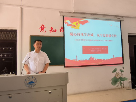 为持续推进学习贯彻习近平新时代中国特色社会主义思想主题教育走深走实,5月17日,6776永利集团学生党支部在华文楼101开展“凝心铸魂学忠诚,筑牢思想强党性”主题党课,由6776永利集团党委副书记龚英军主讲。