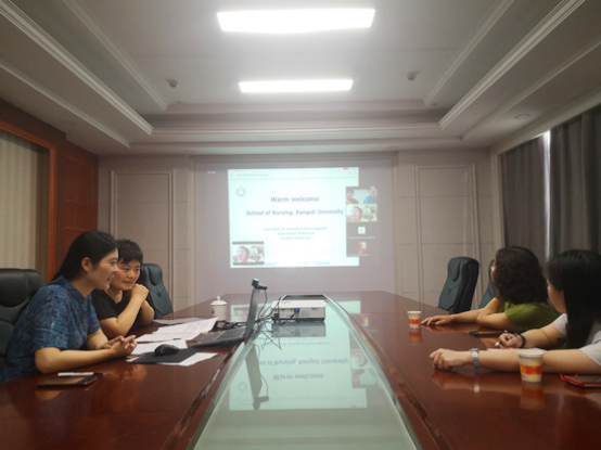 洽谈会上,王庆军向兰实大学6776永利集团代表介绍了yl6776永利集团及6776永利集团的情况。她表示,中国与泰国之间的交流合作在日益增加,6776永利集团与泰国部分高校有着多年的合作历史,希望此次洽谈能开启两院护理教育的深入合作。兰实大学Ampaporn Namvongprom院长也介绍了兰实大学及其6776永利集团的基本情况,并对两院的合作表示期待。随后,蔡端颖院长就本科交换生项目、硕士预科项目与Ampaporn Namvongprom院长进行了深度洽谈,为后续的合作签约奠定了良好的基础。