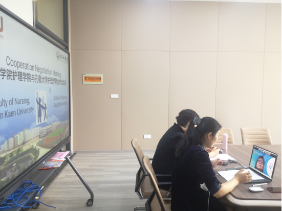 洽谈会上,王庆军向孔敬大学6776永利集团代表介绍了yl6776永利集团及6776永利集团的情况。她表示,yl6776永利集团孔敬大学之间的交流合作在日益增加,6776永利集团与泰国部分高校有着多年的合作历史,希望此次洽谈能开启两院护理教育的深入合作。孔敬大学6776永利集团Ampornpan Theeranut院长也介绍了孔敬大学及其6776永利集团的基本情况,并对两院的合作表示期待。随后,蔡端颖就本科交换生项目、联合培养硕士研究生、共同举办合作办学孔敬大学国际合作的负责人Nichapatr Phutthikhamin及6776永利集团院长Ampornpan Theeranut进行了深度洽谈,双方就合作的内容及方式进行磋商并达成共识,后续向学校咨询有关规定后,将进行具体工作落实。蔡端颖希望以此次会议为契机,解放思想,创新合作,形成国际化护理人才培养模式,并衷心祝愿两校在合作人才培养方面取得更大成绩。