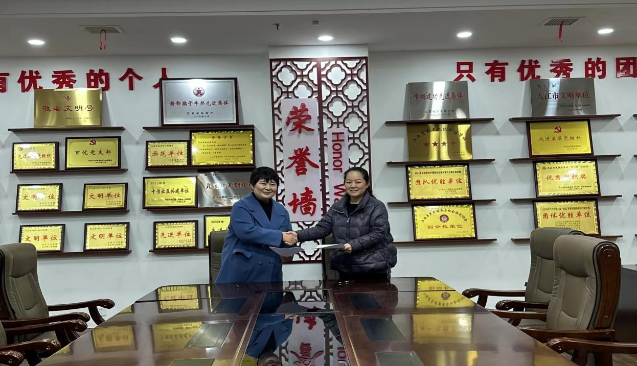 12月5日下午,在九江市社会福利院,我院副院长王庆军与福利院院长殷娟签订了