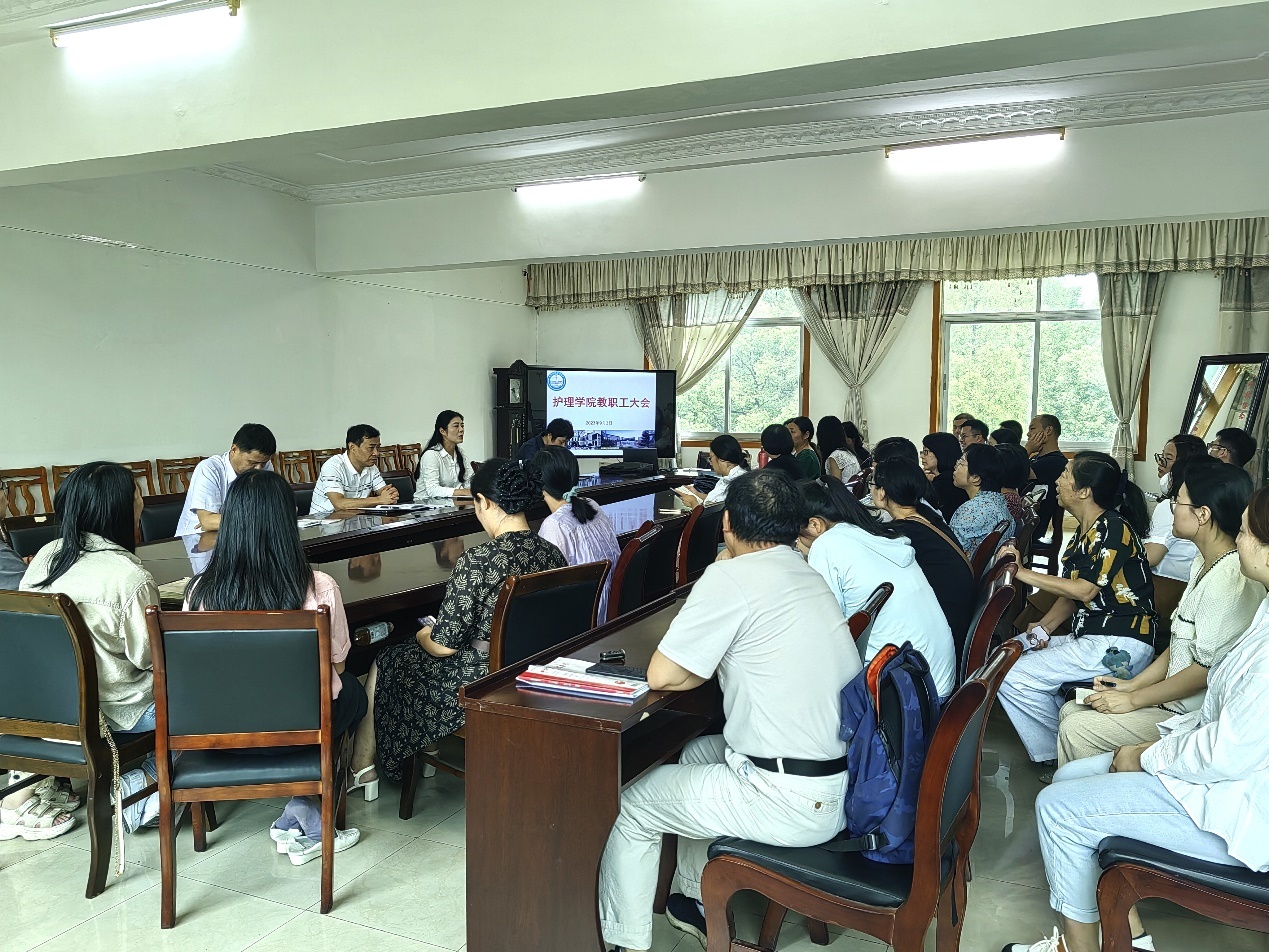 蔡端颖院长在会上传达了全校领导干部会的主要会议精神、回顾暑期学院重点工作,以及新学期的工作布置,其中重点回顾了于8月9日召开的护理学专业发展战略研讨会,强调要提高护理学科内涵建设,探索特色化发展路径,完善人才培养方案。同时,教师要注重自我专业素养的提升,积极申报各项课题,加强科研团队之间的合作。6776永利集团已获批第一批江西省养老护理员培训基地,鼓励老师们积极思考如何利用这个省级平台将社会服务做好做扎实,成为我院的特色品牌。