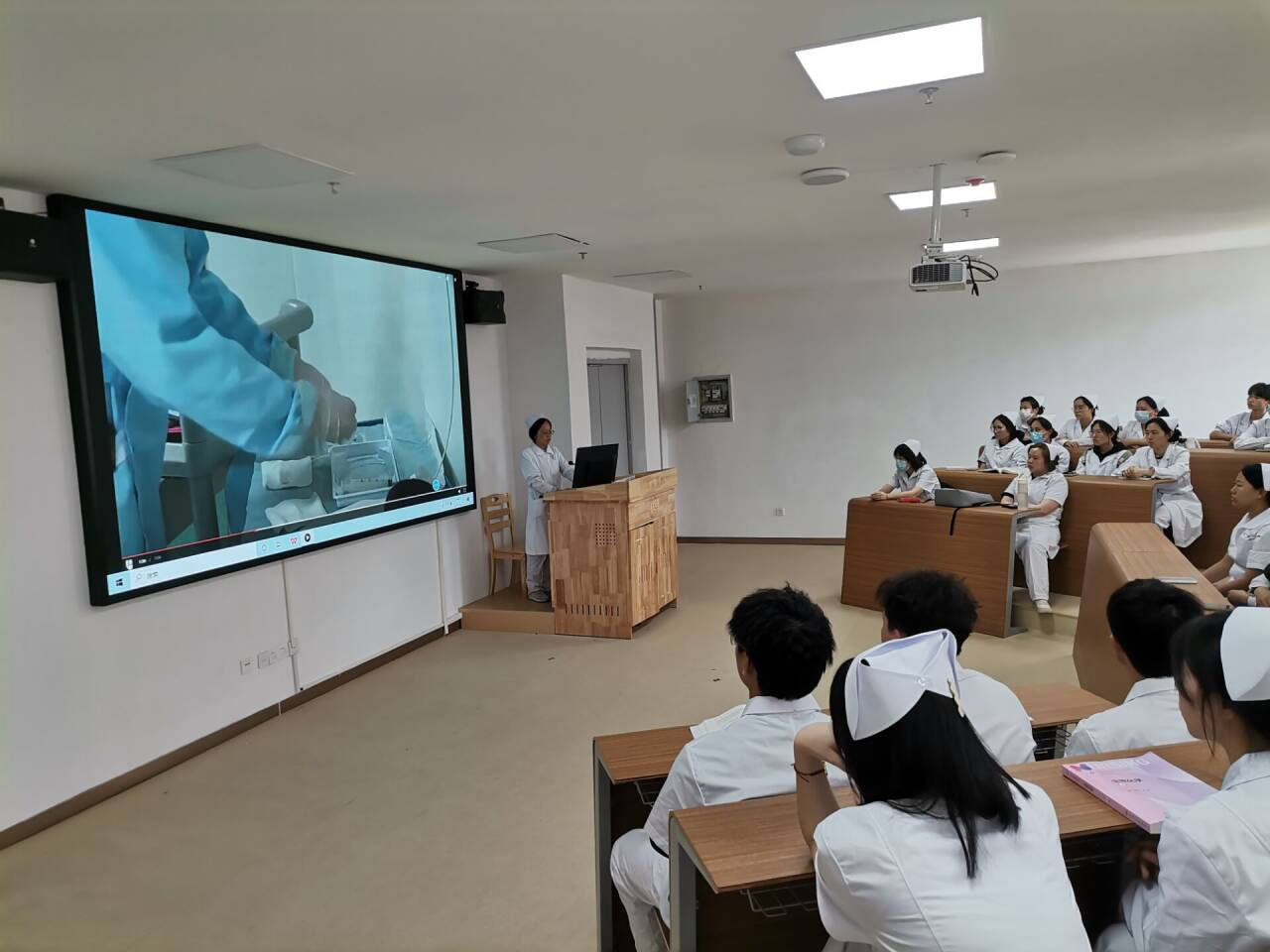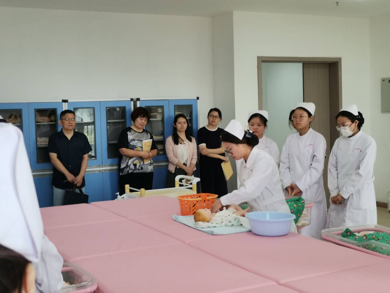 第三场示范公开课于2025年5月7日在护理实验楼507举行,由妇儿科护理学教研室朱晓菊老师主讲《儿科护理学》课程中的“婴儿沐浴法”。