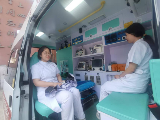 余悦:当我真正走进急救车内部,看到那紧凑却功能齐全的布局时,内心充满了震撼。每一台设备都有着至关重要的作用,它们相互配合,共同构成了一个移动的生命救援站。带教老师对急救车出车制度和工作流程的讲解,让我对急救工作的严谨性和高效性有了更深刻的认识。从接到急救电话那一刻起,急救人员就必须与时间赛跑。他们需要迅速检查设备、药品是否齐全,确保急救车处于最佳状态,然后以最快的速度奔赴现场。在这个过程中,每一个细节都不容忽视,因为哪怕是一秒钟的耽误,都可能对患者的病情产生不可逆转的影响。
