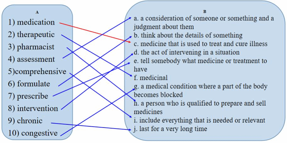 1.2 Fill in the blanks with the words learned above. Make changes if necessary. (1)The physician examines the patient then diagnoses the disease and prescribes medications. (2)What we should do is that we would then perform an intervention. (3)People lived shorter lives so they didn't get far enough to suffer from the chronic diseases that people are suffering more today. (4)She suffered congestive heart failure and spent weeks in the hospital. (5)Some patients in therapy want to learn to find satisfaction in what they do. (6)You need to assess all risks to determine if the operation are within acceptable level of risk. (7)Bed rest is the best prescription for back pain. (8)We have ample reason to conclude that chronic anger is bad for us. 2.Focus on reading I Medication therapy management (MTM) is medical care provided by pharmacists whose aim is to optimize drug therapy and improve therapeutic outcomes for patients. Eleven national pharmacy organizations adopted this definition in 2004. Medication therapy management includes a broad range of professional activities, including but not limited to performing patient assessment and a comprehensive medication review, formulating a medication treatment plan, monitoring efficacy and safety of medication therapy, enhancing medication adherence through patient empowerment and education, and documenting and communicating MTM services to prescribers in order to maintain comprehensive patient care. Medication therapy management includes five core components: a medication therapy review (MTR), personal medication record (PMR), medication-related action plan (MAP), intervention and/or referral, and documentation and follow-up. A MTR is a systematic process of collecting patient and medication-related information which occurs during the pharmacist-patient encounter. In addition, the MTR assists in the identification and prioritization of medication-related problems. During the MTM encounter, the pharmacist develops a PMR for use by the patient. The PMR includes all prescription and nonprescription products and requires updating as necessary. After assessing and identifying medication-related problems, the pharmacist develops a patient-specific MAP. The MAP is a list of self-management actions necessary to achieve the patient’s specific health goals. In addition, the patient and pharmacist utilize the MAP to record actions and track progress towards health goals. During the MTM session, the pharmacist identifies medication-related problems and determines appropriate interventions for resolution. Often, the pharmacist collaborates with other health care professionals to resolve the identified problems. Following the patient encounter and intervention, the pharmacist must document his/her encounter and determine appropriate patient follow-up. Hepler and Strand define pharmaceutical care as the provision of drug therapy in order to achieve definite outcomes that improve a patient’s quality of life. Outcomes include cure of a disease, elimination or reduction of a patient’s symptomatology, arresting or slowing of a disease process, and preventing a disease or symptomatology. The process includes pharmacist collaboration with other health care professionals in designing, implementing, and monitoring a therapeutic plan for a patient. Pharmaceutical care focuses on the pharmacist’s role in achieving therapeutic goals to improve the patient’s quality of life. MTM services target beneficiaries who have multiple chronic conditions (such as diabetes, asthma, hypertension, hyperlipidemia, and congestive heart failure), take multiple medications, or are likely to incur annual costs above a predetermined level. 3.Translation 护士:你好!你是史密斯先生吗?·史密斯先生:是的。 护士:现在我给你打一针。·史密斯先生:好的。 护士:我先给你做个皮肤测试,看看你是否过敏。(过了一会儿) 由于您对抗破伤风血清敏感,我们必须给您注射四剂,每隔20分钟注射一次。 先生。史密斯:我应该多久打一次针? 护士:一天一次。 先生。史密斯:你把它放在哪里? 护士:在臀部。 先生。史密斯:我昨天发现屁股上有个肿块。我该怎么办呢? 护士:让我看看。最好用热毛巾敷一下。一天两次,每次15分钟。如果没有好转,我们将尝试物理治疗。 先生。史密斯:非常感谢。 护士:不客气。 4.Focus on reading II Chinese Herbology(1) Chinese herbology (simplified Chinese or traditional Chinese) is the theory of traditional Chinese herbal therapy, which accounts for the majority of treatments in traditional Chinese medicine (TCM). The term herbology is misleading in the sense that, while plant elements are by far the most commonly used substances, animal, human, and mineral products are also utilized. Thus, the term "medicinal" (instead of herb) is usually preferred as a translation for yào. ·Raw materials There are roughly 13,000 medicinals used in China and over 100,000 medicinal recipes recorded in the ancient literature. Plant elements and extracts are by far the most common elements used. In the classic Handbook of Traditional Drugs from 1941, 517 drugs were listed-out of these, only 45 were animal parts, and 30 were minerals. For many plants used as medicinals, detailed instructions have been handed down not only regarding the locations and areas where they grow best, but also regarding the best timing of planting and harvesting them. Some animal parts used as medicinals can be considered rather strange such as cows' gallstones. Furthermore, the classic materia medica Bencao Gangmu describes the use of 35 traditional Chinese medicines derived from the human body, including bones, fingernail, hairs, dandruff, earwax, impurities on the teeth, feces, urine, sweat, and organs, but most are no longer in use. ·Preparation Each herbal medicine prescription is a cocktail of many substances, usually tailored to the individual patie