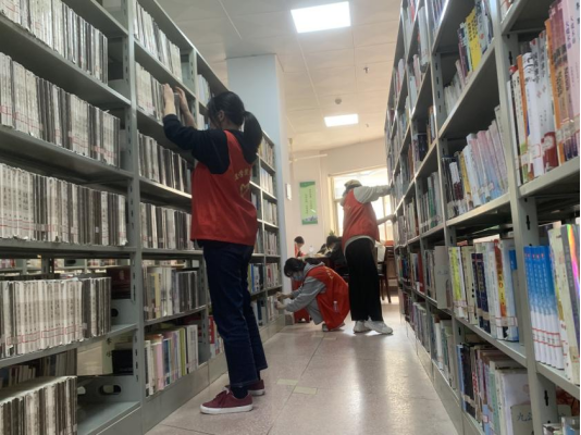 留下书香,带走灰尘。青年志愿者们在学校整队集合,一同前往九江市图书馆进行图书整理志愿活动。活动开始前,图书管理员向志愿者们讲述活动中的服务内容与注意事项。紧接着,由工作人员分别带领志愿者们到相应楼层进行工作。在活动中,志愿者们充满干劲,用自己的实际行动展现志愿服务的积极热情。在青年志愿者们的齐心协力下,整个图书阅览室变得整洁干净。参加志愿活动的同学们表示:“我们在整理图书的过程中学到了一些图书管理方面的知识,综合素质也得到了提高。看着变得整齐一致的书籍,我们所有的付出和辛苦都是值得的。”