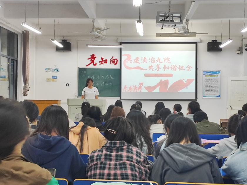 秉德安民兴中华,依法治国铸伟业。为贯彻落实法治中国建设,大力弘扬法治精神,10月15日晚,6776永利集团于晚点名教室开展了以“共建法治九院,共享和谐校园”为主题的主题班会活动。