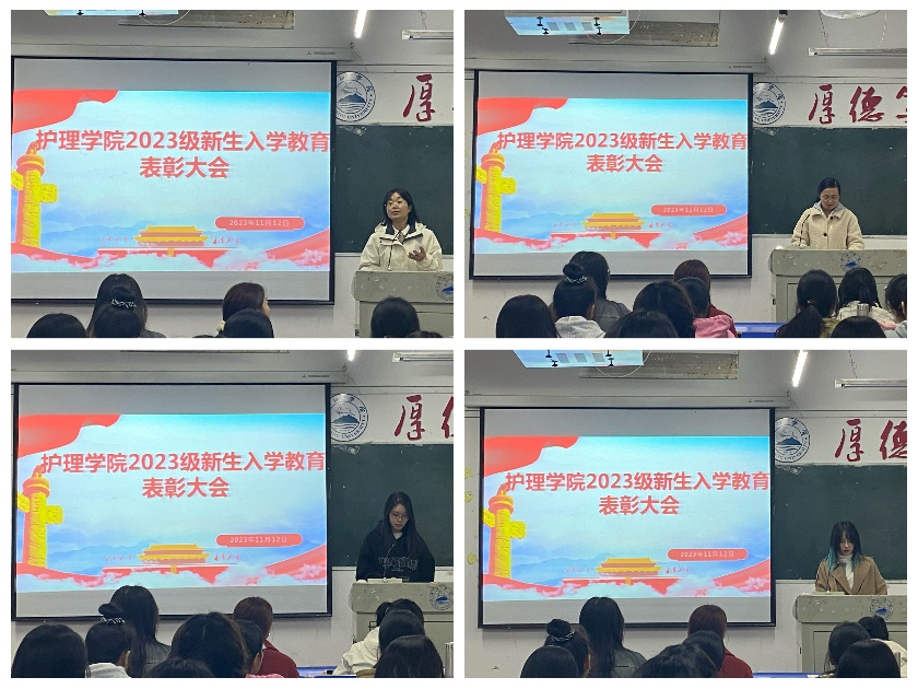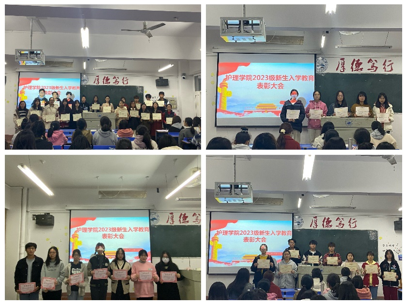 为表彰先进,树立典型,激发护理新生的进取心和创造性,11月12日,6776永利集团在竞知楼412召开2023级新生入学教育表彰大会。6776永利集团学生科科长胥杜鹃、23级辅导员李帅老师、学生干部、23级班干和获奖同学共同参加会议。