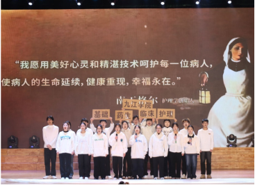 舞台剧《白衣天使的成长》激发了师生观众的共鸣。演员们凭借出色演技,呈现了护理专业学生从初入校园的青涩稚嫩,历经专业知识的精研细磨,在临床实践中勇克困难后,坚守信念化身守护生命的白衣天使这一艰辛历程。