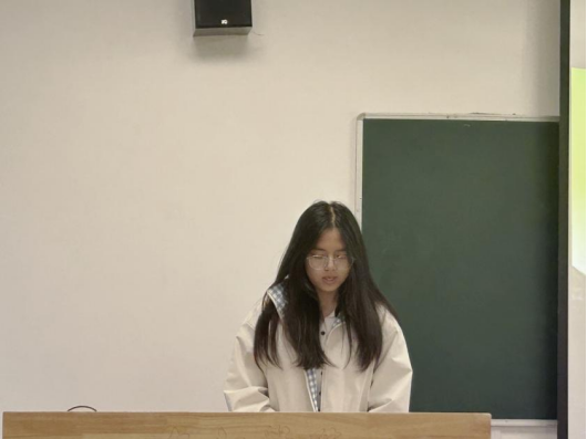 获奖学生代表饶悦筝随后发言,她分享了自己在学习和实践中的经验与感悟,言辞间满是对国家资助政策的感激,对学校、老师悉心栽培的感恩。她鼓励同学们勤奋学习、积极进取,坚守初心,勇攀高峰。同学们专注倾听,眼中闪烁着向榜样看齐的坚定光芒,心中立下追赶先进的誓言。