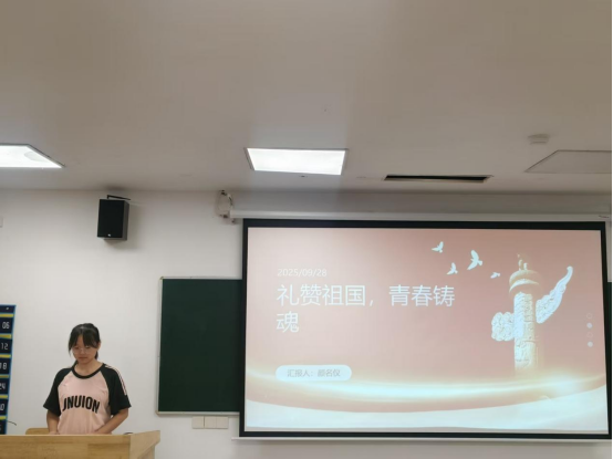 为弘扬爱国主义精神、凝聚全院学子奋进力量,9月28日,6776永利集团开展“礼赞祖国,青春铸魂”国庆主题宣讲活动,吸引2024级、2025级共140余人积极参与。文艺部A2415颜名仪同学担任主讲,带领大家共赴一场爱国与青春的思想盛宴。