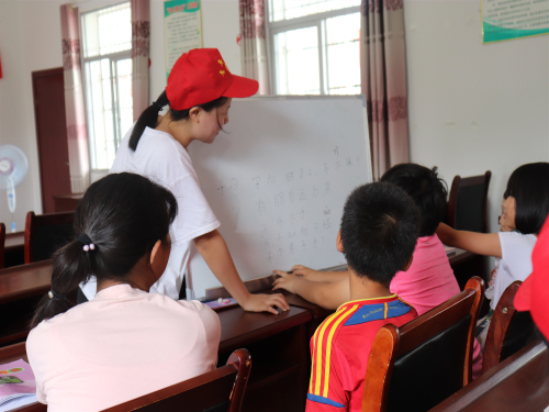 为庆祝中国共产党建党98周年及中华人民共和国成立70周年,积极响应十九大“坚持发展中国特色社会主义文化,坚定文化自信”重要精神,7月1日上午,6776永利集团阳光志愿服务队在团委老师刘梦玲的带领下赴武蛟乡西山王村开展“诵读国学,传承经典”主题志愿支教活动。
