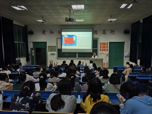 主持人首先向同学们介绍了五星红旗诞生的历史背景及其颜色与图案的象征意义,让同学们进一步了解了五星红旗背后蕴藏的深刻含义。随后,主持人向同学们阐述了爱国主义的具体含义,介绍了牢固树立“四个意识”、坚定“四个自信”、坚决做到“两个维护”的含义。同学们纷纷表示:通过回顾五星红旗的深刻含义以及爱国主义伟大精神,心中的爱国之情与民族自豪感愈发浓烈。活动最后,同学们积极朗读诗歌《赞美祖国》,积极表达自己对祖国的美好祝愿。A1912班的陈霞同学表示:“有国才有家,家是最小国,国是千万家,我今生生为华夏儿女,何其有幸,此生不悔入华夏,来世还做华夏人。”而A1912的方瑶同学则道:“祝福祖国的明天,天更蓝山更绿水更清,经济更繁荣人民更幸福国力更强盛。”