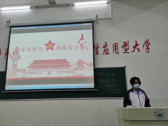 活动伊始,主持人播放“我和我的祖国”歌曲视频,渲染了全场的气氛,同时展现了抗疫期间不同职业的工作者们的爱国情怀,表达青年工作者们对社会主义核心价值观以及青年担当的认可。随后,同学们纷纷上台以文字的形式表达了自己对祖国的祝福和心意。活动以鲁迅的青春故事结尾,展示了鲁迅先生对国家的热切关注以及为革命奉献的精神品质,为同学们树立了一个忠于奉献,忠于祖国的好榜样。