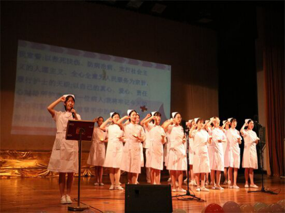 最后是授烛传光仪式,6776永利集团的老师们向学生授以红烛。“师者,解之惑,授之业,传之道。”大医之道便在桃李更迭间手手相传。6776永利集团学生会主席带领全体学生集体宣誓。“献身护理事业,热爱护理专业”,这是青年学子的赤子真心,满腔热忱。“天使心向党”,在高高飘扬的党旗下,在无数护理人的投身奉献下,社会主义的护理事业必将不断攀登新的高峰。