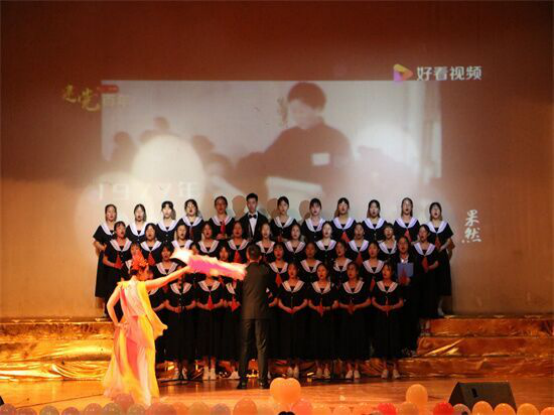 晚19时,晚会正式开始。开场节目是大合唱《国家》,表达的是学生们对于党和国家衷心的爱与真挚的敬意。演唱者们手持小国旗,在庄重悠扬的旋律中歌颂一个新的时代开始,必将谱写隽永的华章。伴舞以热烈的姿态感染了观众,点燃了气氛。