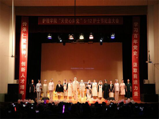 5月12日下午19时,6776永利集团在浔东校区大礼堂隆重举行纪念“5·12”国际护士节暨庆祝建党一百周年晚会。晚会由6776永利集团团委学生会主办,梁光霞书记、蔡端颖副院长、易本谊副院长出席了此次晚会,向6776永利集团全体教职人员和莘莘学子表示节日的慰问,并致以美好的祝愿。全院学生积极参与筹备此次晚会。晚会演出形式丰富多样,有合唱、朗诵、群舞、情景剧和走秀等多种群众喜闻乐见的形式。内容之广泛,思想之深刻,体现了新时代护理学生的思想性、实践力。