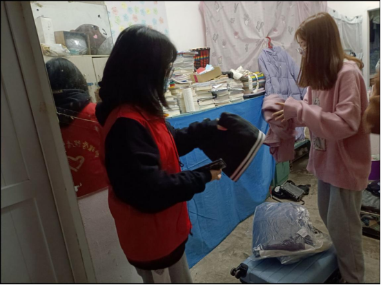 晚上6点半,志愿者们准时到达女二楼下,与负责人对接好工作后便根据分组有序下寝。活动中,志愿者们来到各自收衣的楼层有序进行收衣活动,礼貌地询问同学们是否有旧衣物闲置能够捐赠,同时也向同学们宣传本次活动的意义,并告知这些衣物将会被捐赠给全国各地需要的人。同学们也展现出了极高的热情和配合度,纷纷捐赠出自己闲置的衣物。活动结束后,志愿者们将收集的衣物进行分类整理,并于20日早上九点齐力将物品搬至欧风园,随后将物品装上车箱由义工开车送往目的地。