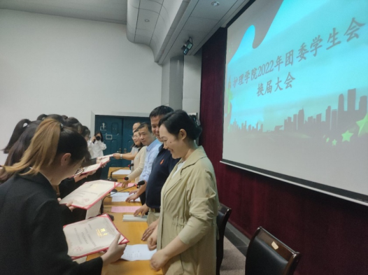 学生科科长胥杜鹃宣读新一届团委学生会学生干部名单,祝贺新任学生干部,勉励他们严于律己、奋勇争先,激励新任学生干部时刻保持高度工作热情,不负使命,接好接力棒,开启新篇章。与会老师为离任团委学生会学生干部颁发聘书。