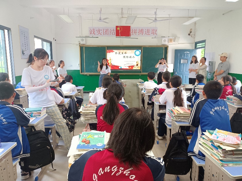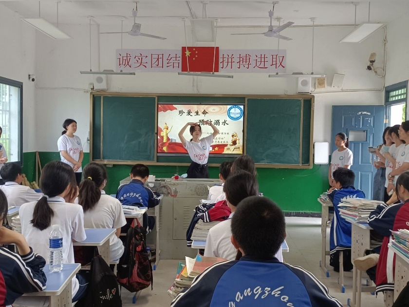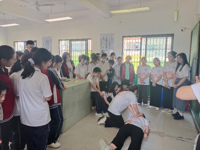 “红细胞”服务队开展了防溺水讲座,以问答形式普及溺水急救知识,形成良好的互动氛围,寓教于乐;示范了心肺复苏和一些简单自救技巧,循序渐进,同学们纷纷表示受益匪浅。
