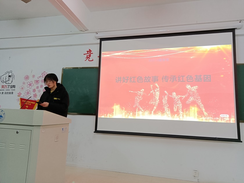 各班团支书循循善诱,带领同学们追忆革命风云历程,回顾“红色事迹”;围绕革命先烈、英雄模范的典型事迹,讲述“红色故事”;聚焦愈久弥坚的革命精神,发扬“红色精神”,营造传承红色基因的氛围,唤起广大青年团员对峥嵘岁月的回忆,激发厚植于心中的家国情怀。