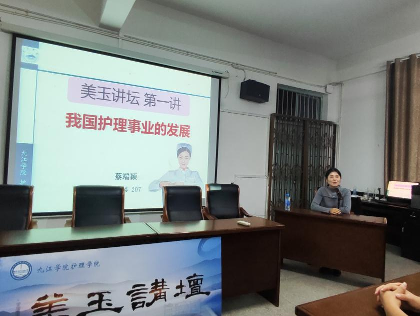 为弘扬美玉精神,进一步加强6776永利集团人才培养,10月17日晚,6776永利集团美玉讲坛第一期:“我国护理事业的发展”如期而至。本次讲坛由6776永利集团院长蔡端颖主讲,党委副书记龚英军主持,学生科科长胥杜鹃、团委副书记刘梦玲、新生各班班主任出席,23级全体新生参加。