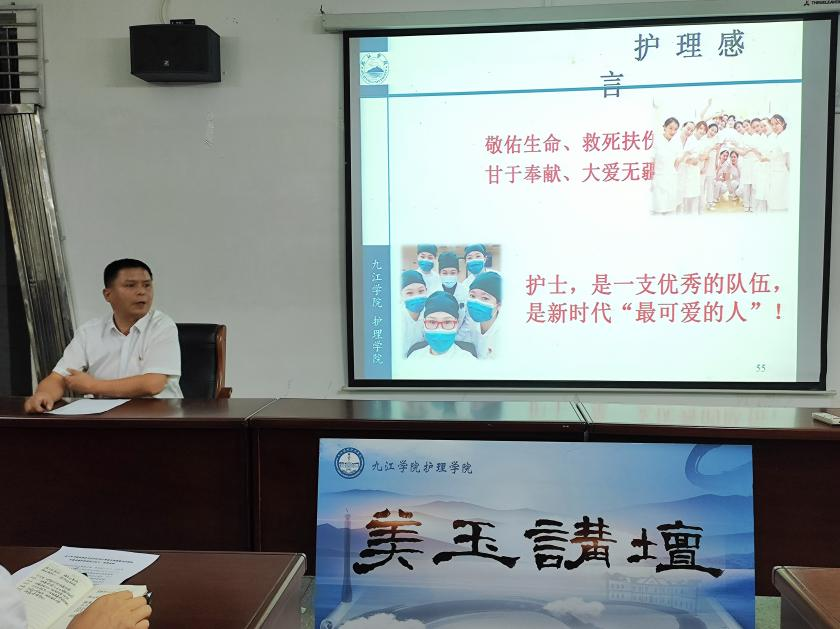 在龚英军的介绍下,活动拉开帷幕。蔡端颖以此次讲坛为契机,畅谈老院长石美玉医护并重的大医观和开拓创新的发展观。从美玉讲坛的由来、护理在健康中国发展中的重要作用、“十四五”时期护理事业的发展规划和护理教育体系等方面发表真知灼见。内容充实丰富,讲述生动有趣。在潜移默化中提高了在场同学的专业修养。