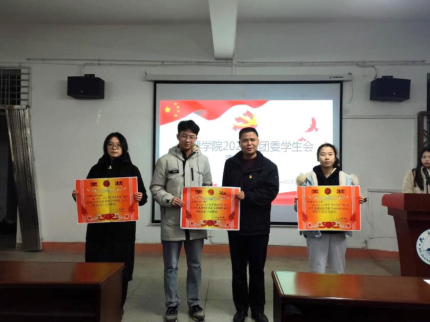 随后,各部门负责人宣布赛事获奖情况。学生会执行主席温锦玲宣读优秀助理辅导员与大学生职业规划大赛获奖名单。团委副书记刘含韵宣读红色走读竞赛与话剧团课大赛获奖名单。组织部部长周钟韵宣读“争鸣杯”辩论赛与校园好网民活动获奖名单。学生会主席纪晓倩宣读主持人大赛和汉语英雄大赛获奖名单。学习部部长吴怡梦宣读文明班级、三好学生、优秀学生干部获奖名单。
