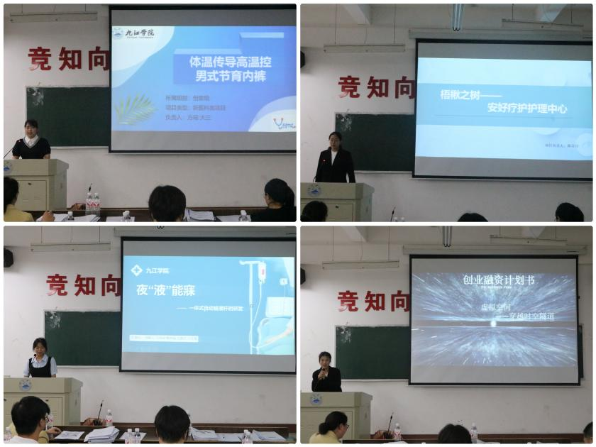 现场沸腾气势高,积极创新将梦扬。比赛顺序采取抽签的形式,每组负责人依次上台向评委与同学们介绍项目、以及产品。同学们的创意精彩绝伦,围绕产品特点,市场分析,项目前景与金融板块进行了有条不紊的讲述,增长智慧才干。其中,智能化尿袋的设计,因其紧贴护理场景,有效的解决了实际问题,保障了患者的安全而得到了老师的肯定。充分的体现了以人为本,产品服务患者的理念,获得评委们的一致好评。