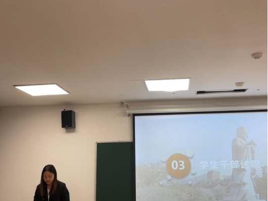 会议伊始,全体参会人员齐唱《光荣啊,中国共青团》,同学们洪亮而饱含激情的声音拉开了大会庄重而热烈的帷幕。学生会轮值主席曾思意首先就学生会的整体工作与未来规划进行汇报,承诺将继续保持认真工作的态度,为全体学生创造优良的学习环境。紧接着,各部门部长依次上台述职汇报,纷纷做出将加强合作,取长补短,共同建设美好未来的决心。