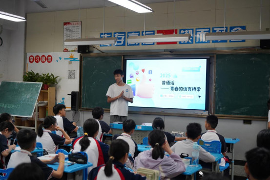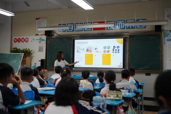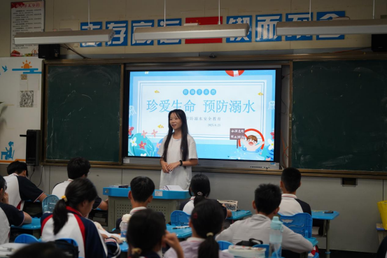 “当‘zhuang’和‘zuang’相遇,谁才是正确打开方式?”队员郑阳灿站在PPT前,结合自身南北方言差异趣味经历为同学们亲身示范。“读对的同学可以获得我们准备的精美小奖品!”同学们的小手瞬间举起。防溺水环节,邝晓雨播放新闻视频后圈出“盲目下水施救”警示框,同学们争相回答,现场气氛热烈非凡。邝晓雨对每一个回答都给予了细致的点评和补充,结合“中小学生防溺水‘六不’原则”,为孩子们撑起生命安全的保护伞。何婉婷用PPT动态分解图演示海姆立克急救法,确保每一个动作都规范到位,让“黄金救援时间”的概念深植童心,照亮孩子们的急救之路。