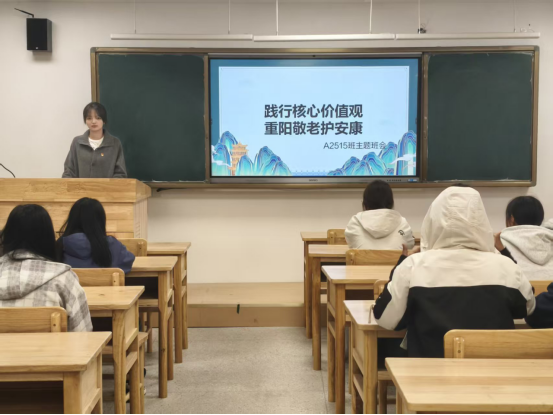 活动中,各班主讲人从重阳节的历史渊源切入,深入阐释了尊老敬老传统与核心价值观的内在联系,增进了同学们的理解与认同。同时结合护理专业特点,详细分析了老年人的身心需求,将专业技能与敬老实践相结合,有效提升了同学们的敬老意识和职业认同。现场氛围浓厚,同学们认真聆听,在重阳敬老与专业使命的共鸣中加深了对护理职业的理解。