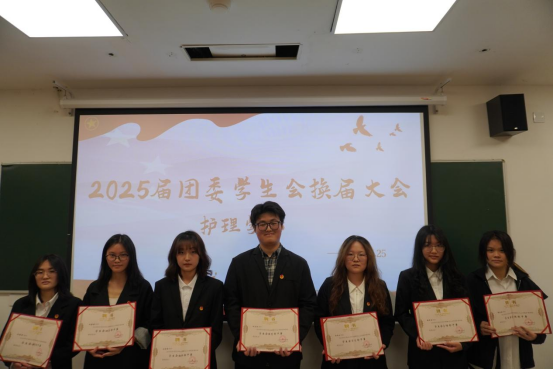 会上,陈鹏老师宣读新一届团委部门名单,胥杜鹃老师宣读新一届学生会部门名单。随后,徐海燕老师和李帅老师分别给22级现任部长和23级离任干事颁发聘书。证书传递的不仅是一份荣誉,更是对离任同学在任期内辛勤付出、无私奉献的认可与感谢。