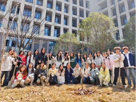 栽种完毕后,同学们在树苗旁合影留念,定格温情瞬间,为这个春日午后留下温暖的记忆。
