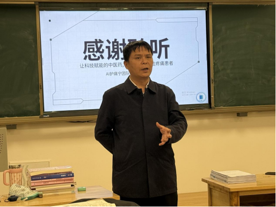 比赛采用抽签确定上场顺序,各参赛小组汇报人依次上台,围绕项目背景、产品特点、市场分析等多方面进行路演展示。同学们的创意紧贴护理专业实际,其中一款基于智能传感技术的防压疮护理床垫,因其精准监测、实时预警的功能,有效解决了临床护理痛点;另有谢欣睿同学负责的“AI护痛宁”项目,充分体现了以人为本、服务患者的理念,获得评委的一致好评。