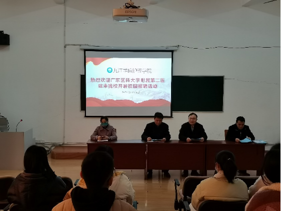 ,龚英军副书记进行动员讲话,希望同学们充分认识到当前就业形势,树立正确的就业观,保持良好的就业心态,珍惜就业机会,积极主动就业。广东医附二院播放了医院专题片并从医院概况、医院文化、护理理念等方面进行了详细介绍该院拥有百年悠久历史,集医疗、教学、科研、康复、预防保健、基本公共卫生服务等功能为一体大型三级综合医院。医院作为广东医科大学的直属附属医院、“研究生联合培训基地”及湛江市全科医师转岗培训临床实践基地,承担着重要的科研与教学工作,为本地区培养了一大批医学人才,是值得6776永利集团毕业生们考虑的就业单位。广东医科大学附属第二医院负责人耐心讲解相应就业优惠政策及薪资情况,一一回答了大家的问题,并表示欢迎九院护理学子们积极报名应聘,为广东医科大学附属第二医院的发展充实力量。一些有意向的同学纷纷就关注的问题与院方进行了面对面的交流和了解。
