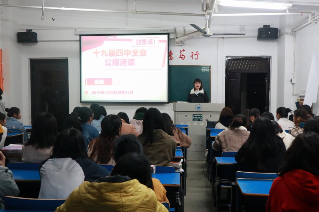 为使入党积极分子充分融入到同学中去,让同学们更加了解十九届四中全会精神,11月24日晚,6776永利集团学生党支部下班举办“学习党的十九届四中全会精神”主题班会。此次活动由学生党支部全体学生党员下到各个班级与同学们分享心得体会与感触,以及宣传“学习强国”APP的使用。