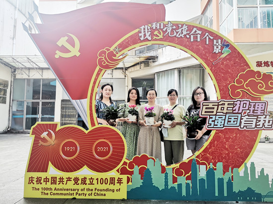 学院还为每位教职工精心准备了盆栽绿植,祝福老师们桃李天下、健康常青、生活火红。会议结束后,老师们纷纷手捧绿植,来到党旗下合影打卡纪念,大家表示,小小绿植蕴含着“十年树木、百年树人”的美好祝愿,它必将化作护理教师们砥砺奋进的精神动力,赓续百年初心,担当育人使命。