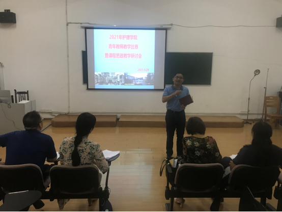 第二阶段比赛结束后进行了课程思政教学大讨论。蔡端颖院长针对青年教师教学比赛过程中各位老师的比赛内容,如何融入课程思政元素,结合医学生的品格应该融入什么样的思政元素等发表了自己的看法;易本谊副院长结合自已所授传染病护理学课程内容,交流了如何在该门课程中融入课程思政元素并结合案例精彩呈现;其他老师也纷纷发言,学生代表从学习者角度表达对课程思政教学效果的感受与建议。整个研讨气氛热烈,发言踊跃,碰撞出思想的火花,激发了大家对课程思政的热情。
