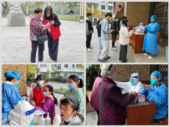 在核酸检测现场,入团积极分子们亲身示范、热情服务。切实开展核酸检测登记、秩序维护等工作,耐心提醒同学们保持一米安全距离,全程佩戴口罩;手把手帮助社区老人使用“健康九江”等小程序,真心实意助力全员核酸检测,为打赢疫情防控狙击战献上绵薄之力。他们书写了护理学子的青春使命,彰显了入团积极分子的责任担当。