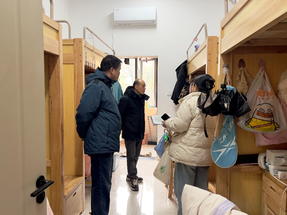 张友木、龚英军带领全体辅导员重点对学生宿舍用电安全、消防安全、卫生状况以及是否存在违规物品等方面进行了逐一排查,对发现的问题当场提出整改意见,要求相关责任人立即整改或限期整改。在检查用电安全时,检查小组提醒同学们要遵守学校宿舍用电规定,严禁私拉乱接电线、使用大功率违规电器,做到人走断电,防止因电路问题引发火灾事故。学院领导与在宿舍休息的同学们亲切交流,了解他们在学习和生活中遇到的问题和困难,并叮嘱同学们要保持良好的宿舍卫生习惯,共同营造整洁、温馨的宿舍环境。