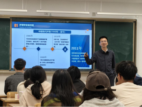 紧接着,方亮主任以“专业引领发展,擘画护理新局“为题开启讲座。他结合自身多年护理管理经验与行业数据,从重症监护、急诊急救、专科护理等特色领域的岗位优势切入,详细解读了当前医疗体系中临床护士的需求缺口与职业晋升路径。为学生搭建起“校园学习”与“职场实践”的衔接桥梁,助力他们在护理领域明确方向,笃定前行。方亮主任在讲座中还特别提到男护士的成长发展,鼓励男性同学找准职业定位,积极投身事业,未来发展大有可为。